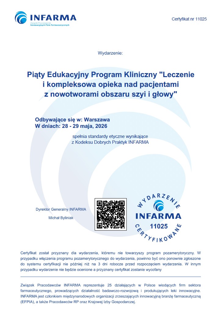 10:00 – 10:20   Leczenie pacjentów z lokalnie zaawansowanymi nowotworami głowy i szyi – wytyczne i nowe doniesienia - Prof. A. Kawecki/dr B Spławski (20 min.)